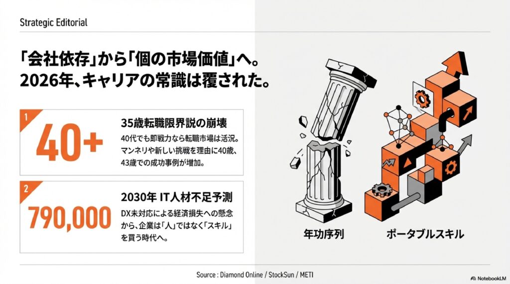 AI時代において、スキルの賞味期限はますます短くなっています。かつての「35歳限界説」はもはや過去のものです。成功の鍵は、自分を「永遠のベータ版(未完成)」と定義し、常に新しいツールや知識を取り入れ続ける成長マインドセットを持つことにあります。