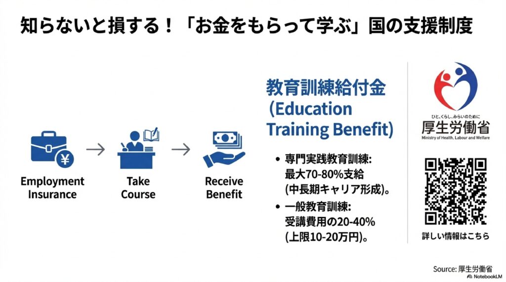 スキルアップにはコストがかかりますが、国や自治体の制度を賢く使えば、実質的な負担を大幅に減らせます。