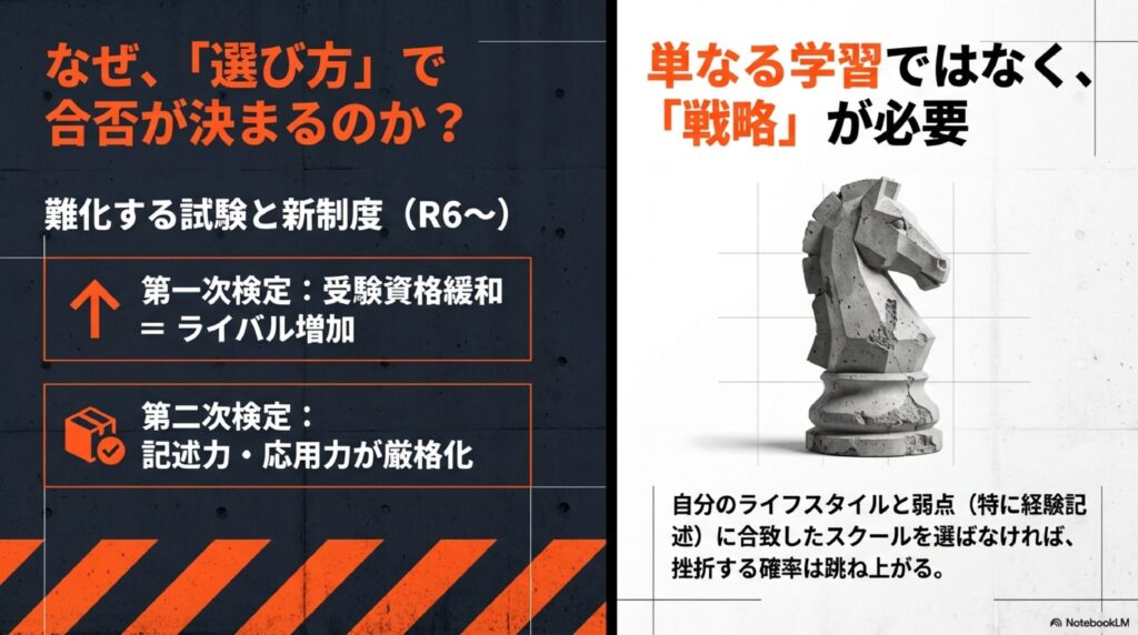 令和6年度の制度改正により、1級の第一次検定は実務経験不要で19歳から受験可能になるなど、若手にも大きなチャンスが広がっています。最短で合格を勝ち取るためには、自分のライフスタイルや予算、そして「記述対策が必要か」という点に合わせた講座選びが不可欠です。