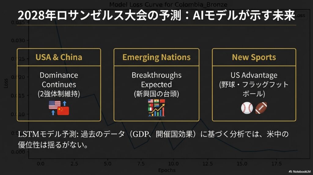 開催国効果は大会後も完全に消滅せず、「レガシー(遺産)」「金メダル数」については東京大会の余波(プレミアム)が認められると分析されています。これは、自国開催に向けて育成されたエリート選手層や、ナショナルトレーニングセンターなどの指導ノウハウ、国民のスポーツ文化への理解といった「ソフト・ハード両面の遺産」が機能し続けているためです。