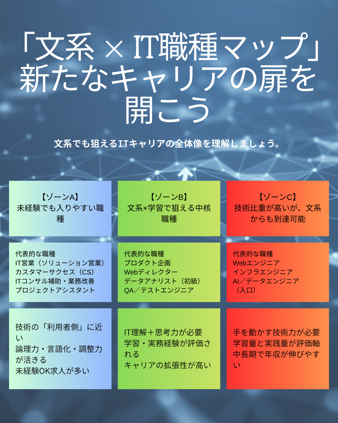 【ゾーンC】技術比重が高いが、文系からも到達可能