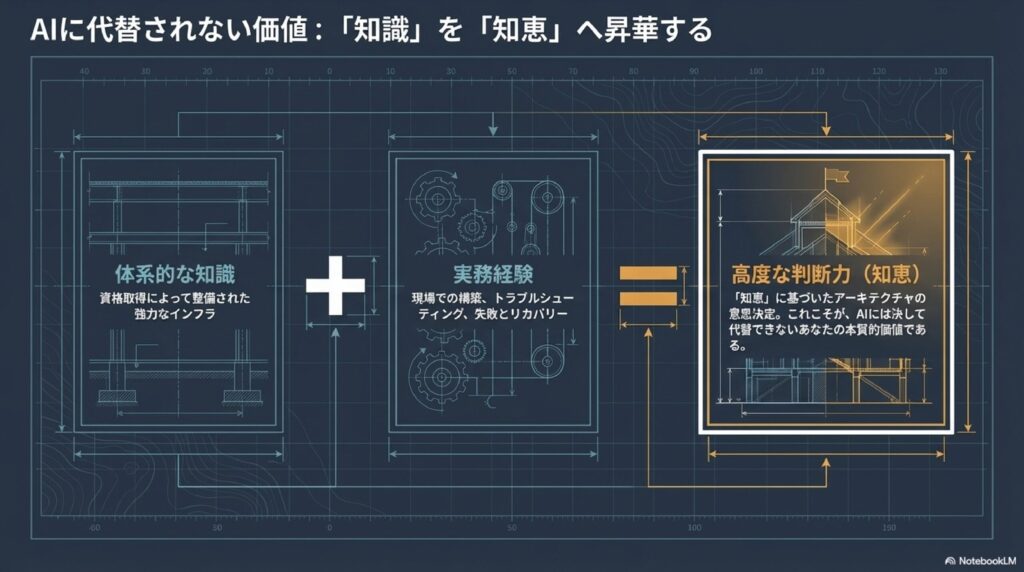 資格取得を通じて得た体系的な知識は、実務経験と融合することで「知恵」へと昇華されます。その「知恵」に基づいた高度な判断力こそが、AIには代替できない価値となり、あなたを年収1000万円超のハイクラスエンジニアへと導く羅針盤となるでしょう