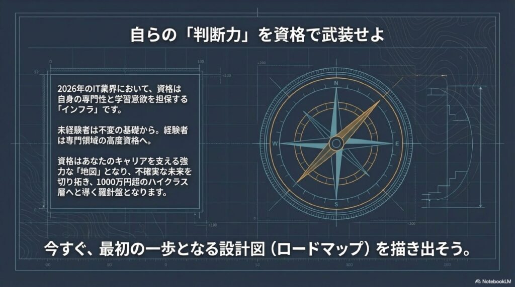 2026年のIT業界において、資格は自身の専門性と学習意欲を担保する「インフラ」です。未経験者や初学者はLinuCや基本情報技術者試験といった「不変の基礎」から着手し、経験者は専門領域(クラウド、AI、セキュリティ)に合わせて高度な資格を戦略的に取得してください。