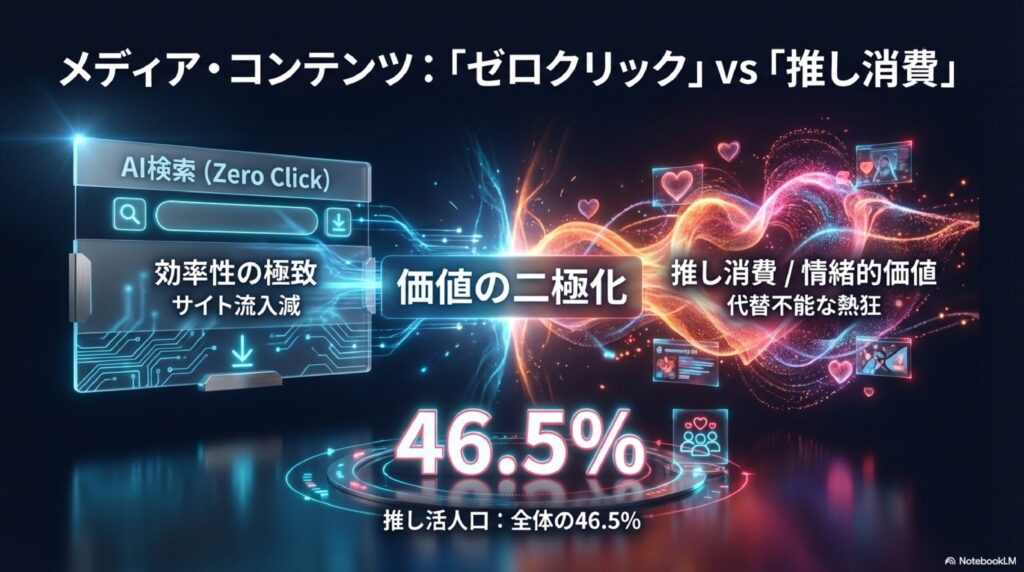 • 推し消費の持続性: 「推し」がいる消費者は全体の約46.5%に達し、一時的なブームを超えた持続的な消費行動となっています。