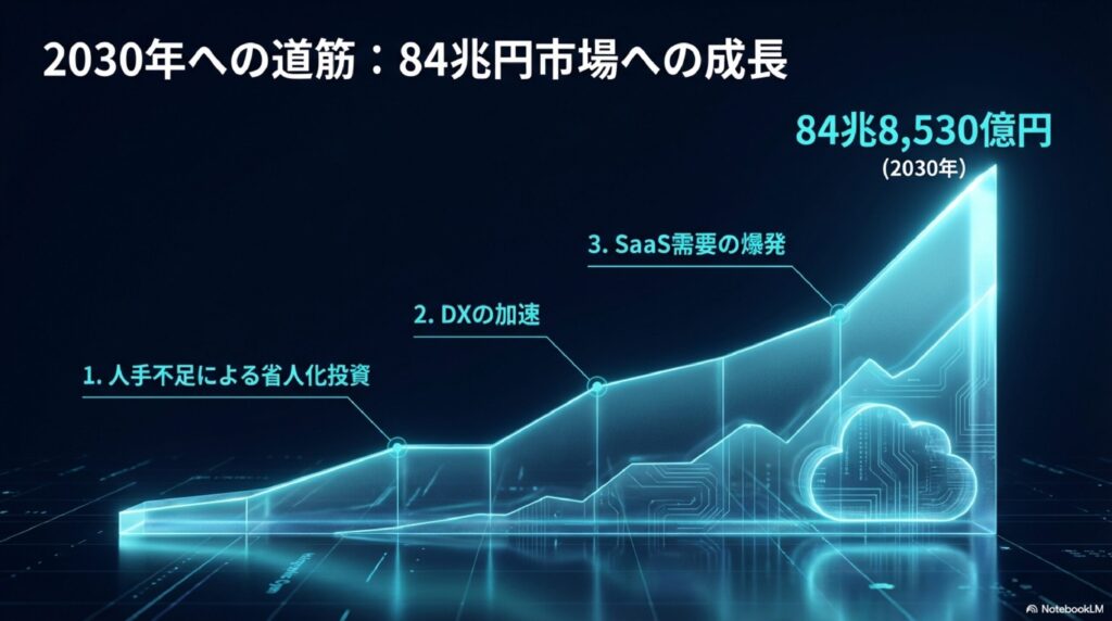 国内IT市場は、2030年には84兆8,530億円に達すると予測されています。