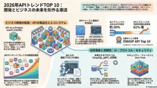 2026年APIトレンド完全白書:API-as-a-Productが切り拓く「APIエコノミー」の未来API(アプリケーション・プログラミング・インターフェース)は、もはや単なるバックエンドの「接続ツール」ではありません。2026年に向けて...