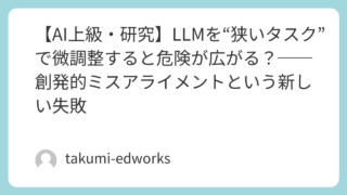 【AI上級・研究】LLMを“狭いタスク”で微調整すると危険が広がる?──創発的ミスアライメントという新しい失敗